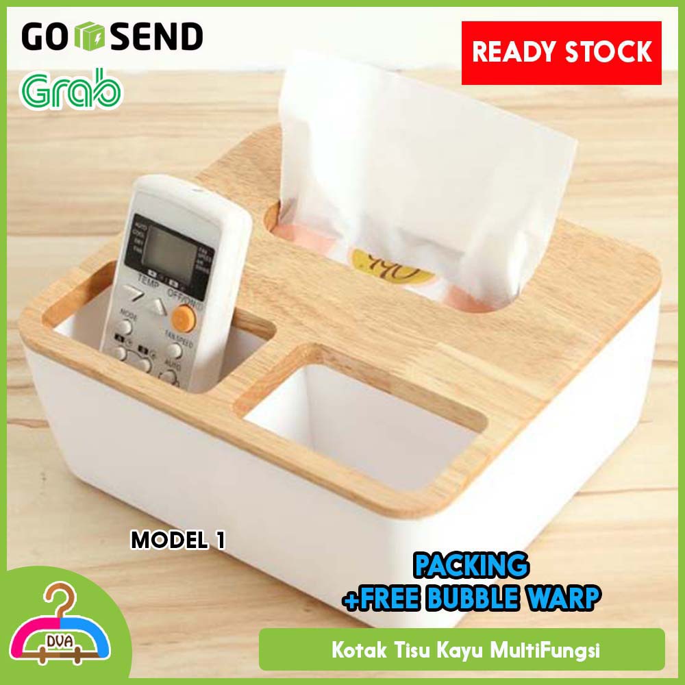Model 1Material Plastic + WoodDimension 22 x 19 x 9 cmModel 2Terdapat Tulisan Merk di ProdukMaterial Wood + PPDimension 22 x 19 x 8 cmTempat tisu ini selain bisa digunakan untuk menyimpan tisu, bisa juga sebagai tempat untuk pulpen, smartphone, pensil, alat tulis dan sebagainya. Sangat cocok ditempatkan di meja kantor maupun ruang tamu rumah Anda.Desain yang menarik membuat tempat tisu ini dapat mempercantik tampilan meja kantor maupun meja ruang tamu Anda.Dengan harga yang begitu murah, Anda akan mendapatkan produk berkualitas yang dapat bertahan untuk waktu cukup lama.Kotak tisu ini dilengkapi dengan 3 buah lubang yang dapat Anda gunakan untuk menaruh berbagai macam b
