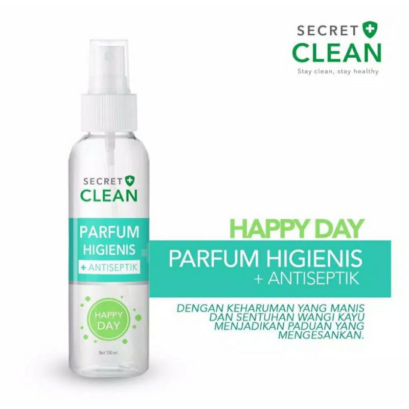 Happy day✓Menjadikan secret clean ferpume higienis bukan sekedar farpume yg akan memberikan wangi pd tubuh /pakaian anda .✓Wewangian tubuh yg diformulasikan khusus dgn antiseptik untuk membunuh kuman &bakteri yg menempel sekaligus mmberikan aroma fruity yg lembut#Cara pakaiSemprot parfum k tubuh/pakaian anda #Komposisi✓Alhkohol✓aqua✓perfume✓ 1