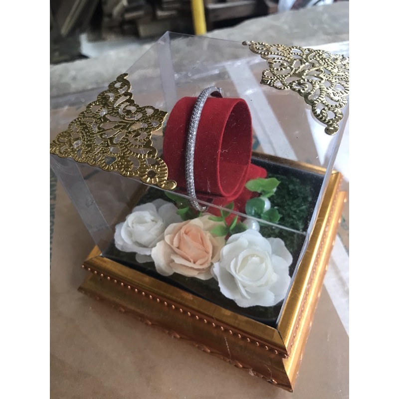 untuk tempat gelang seserahanukuran 12x12 tinggi13cmbisa request warna bunga dan manekintersedia warna hitam goni merah dan marunREADY STOK SIAP KIRIM