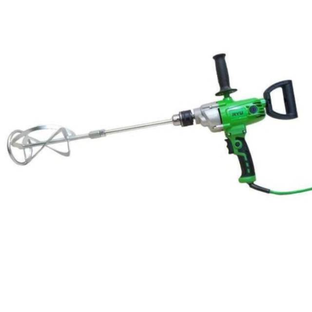 BOR MIXER RYU 16MM RED16RE Spesifikasi=Drill capacity : 16mmNo load speed : 1.200 rpmRated input power : 950 wattRated voltage : 220VRated frequency : 50HzRYU RED16RE adalah mesin pengaduk cat, adonan semen, mortar dan sebagainya yang memiliki daya 950 watt yang meminimalisasi gelembung pada adonan. speed gear box untuk maximum torque untuk applikasi yang berbeda serta soft start untuk control yang lebih baik didalam pengaplikasian. Selain itu, Desain Handle dengan soft grips membuat anda mudah dan nyaman ketika mengaduk
